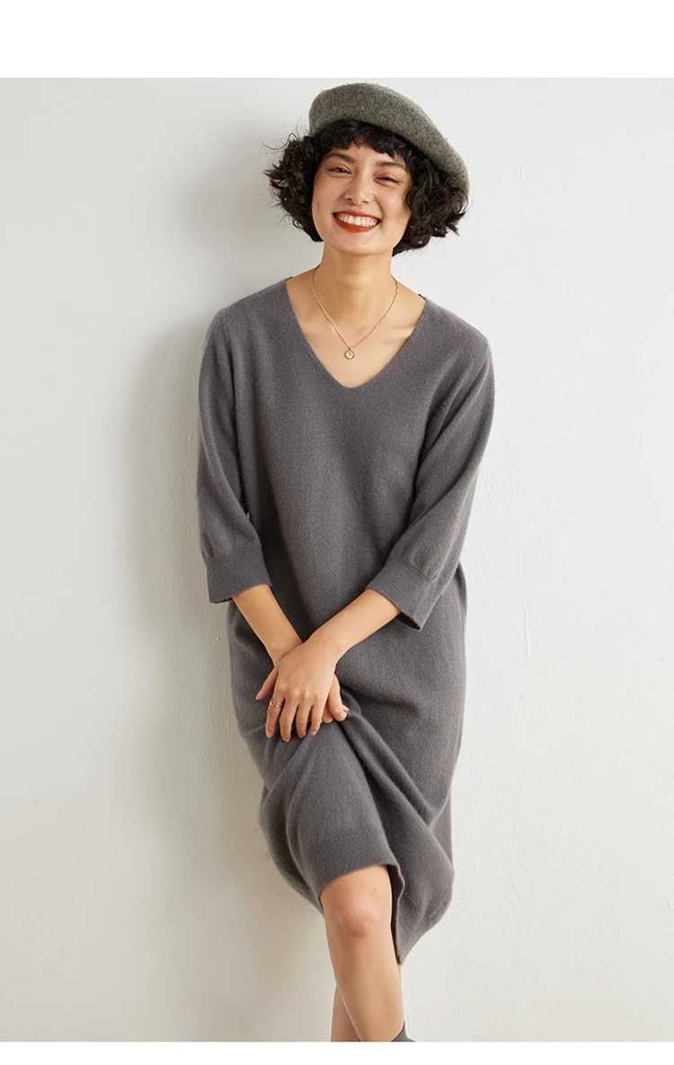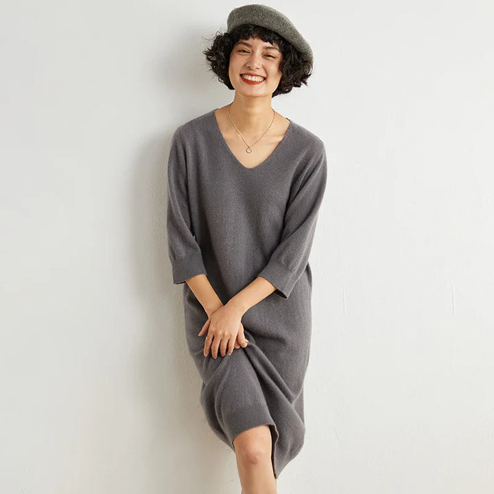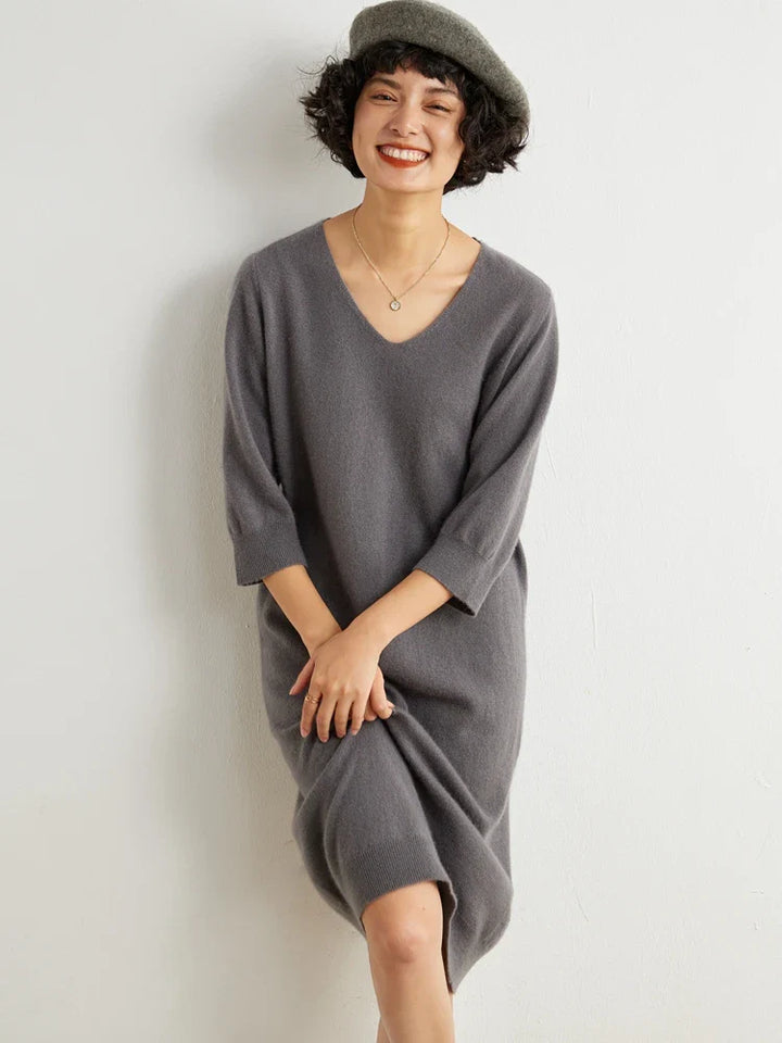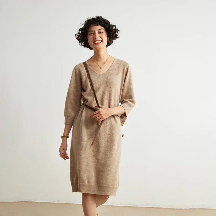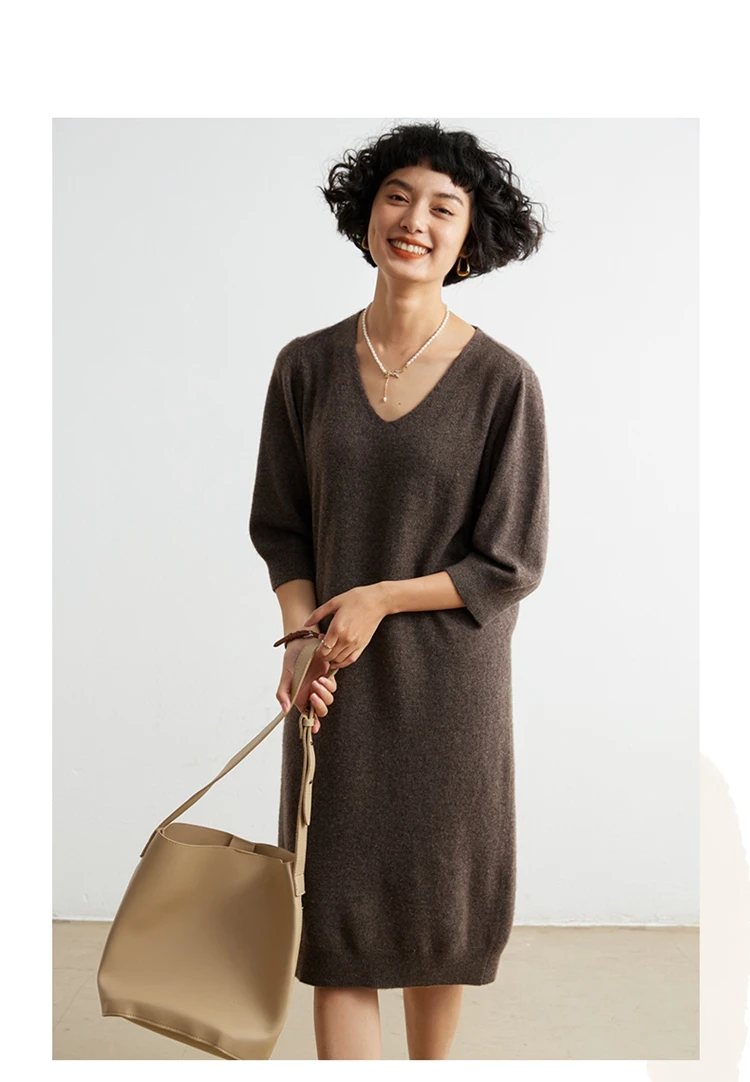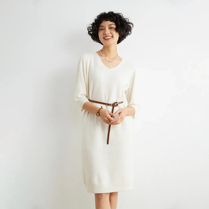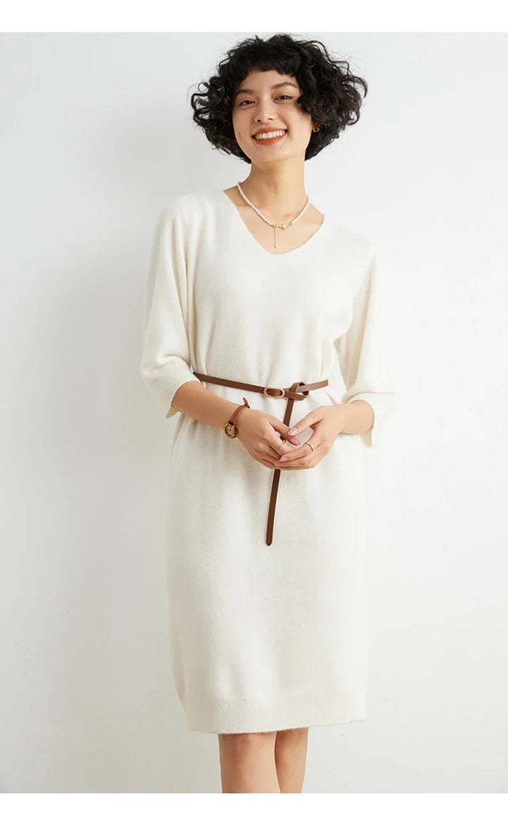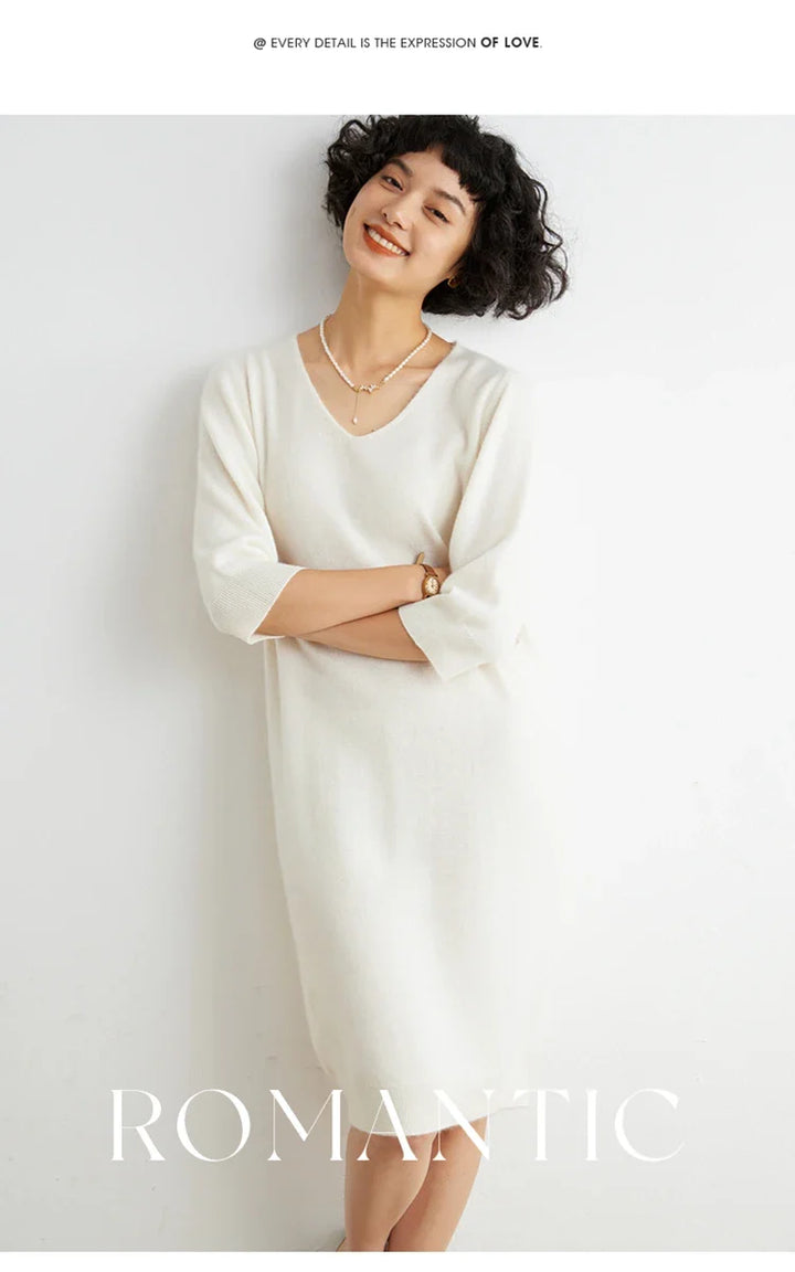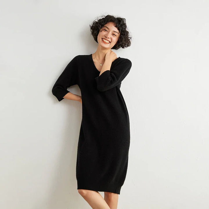 100% Cashmere Half Sleeve Sweater Dress
