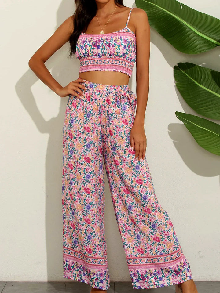 Boho Pattern Camisole & Wide Leg Pants Set