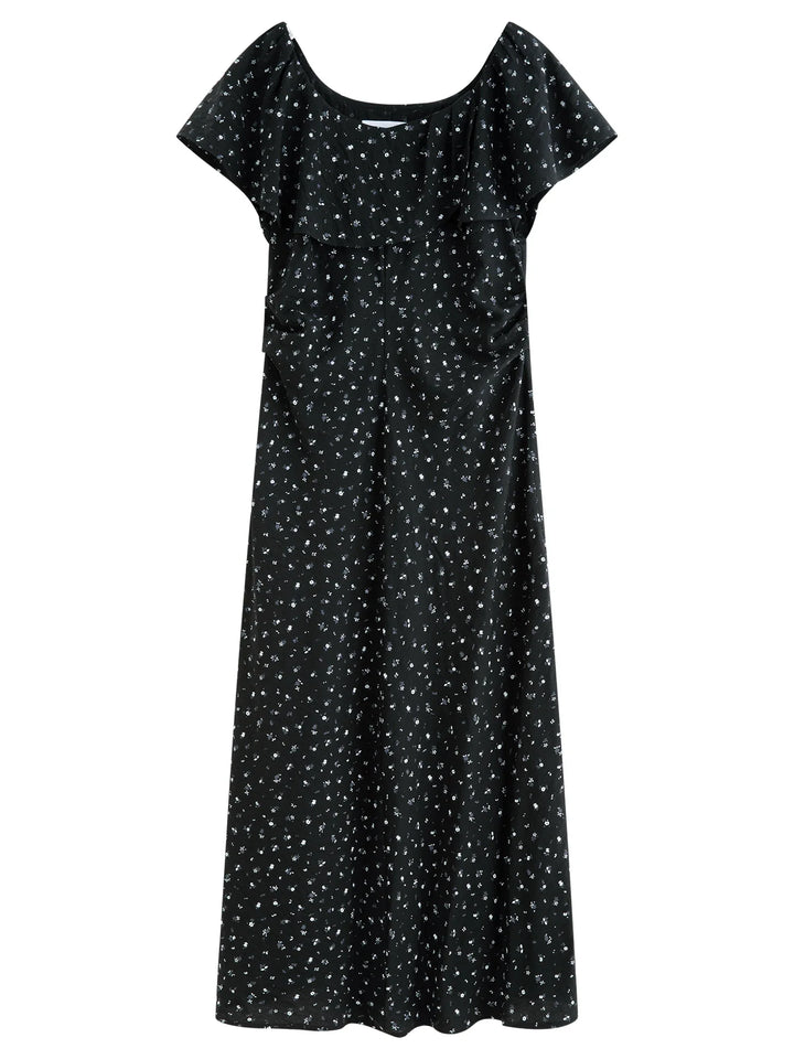 Charmeuse Ruffled Off Shoulder Skirt Dress