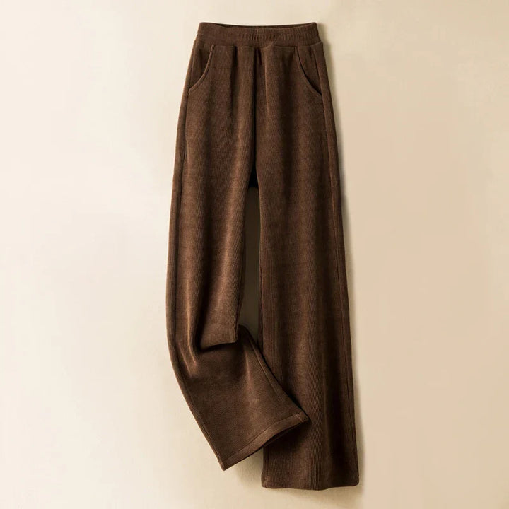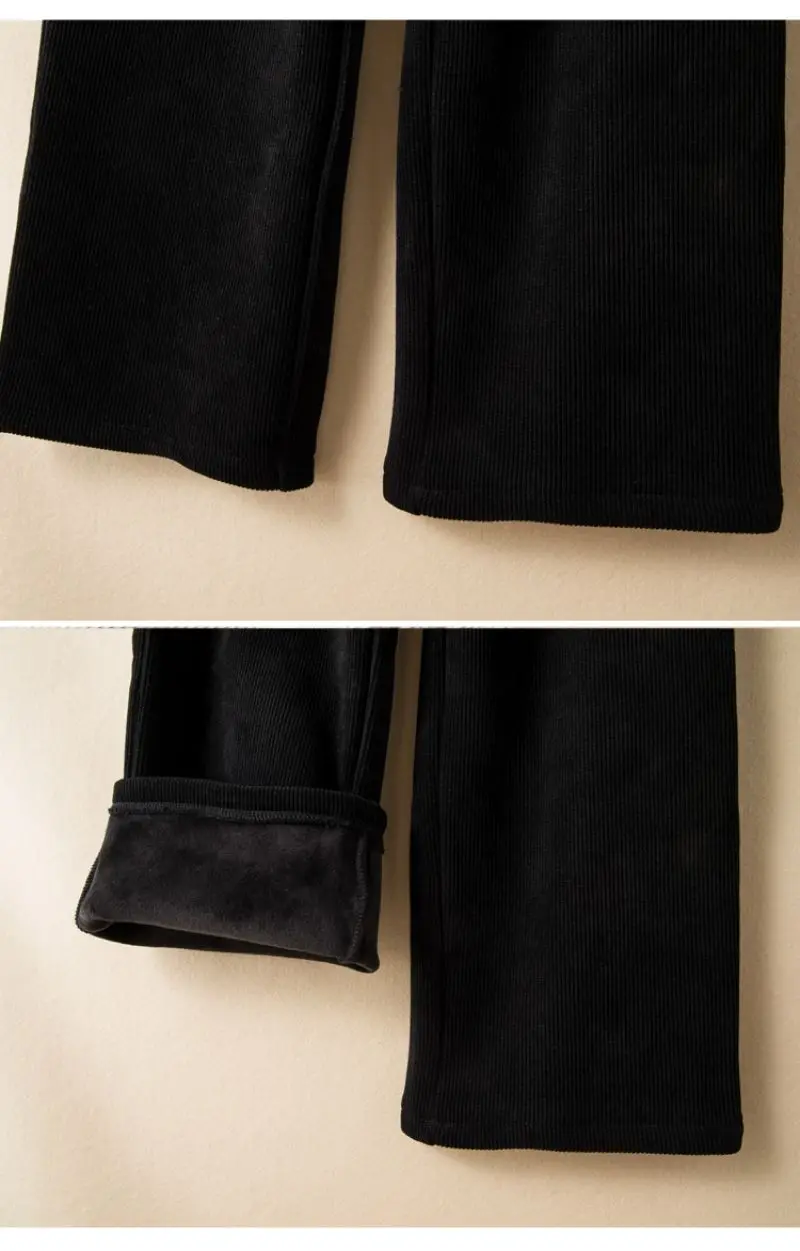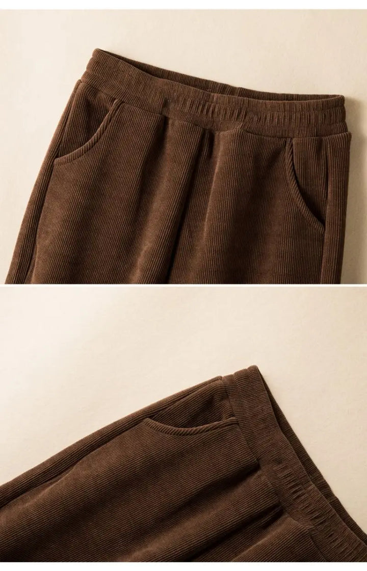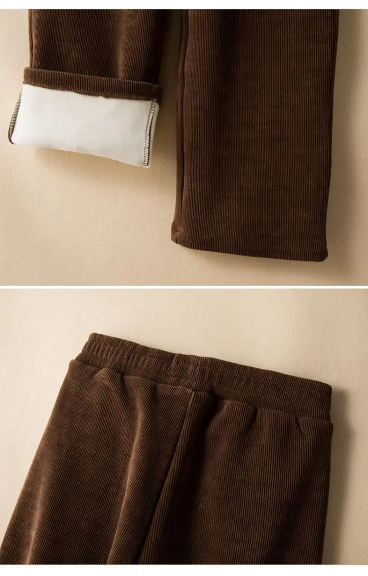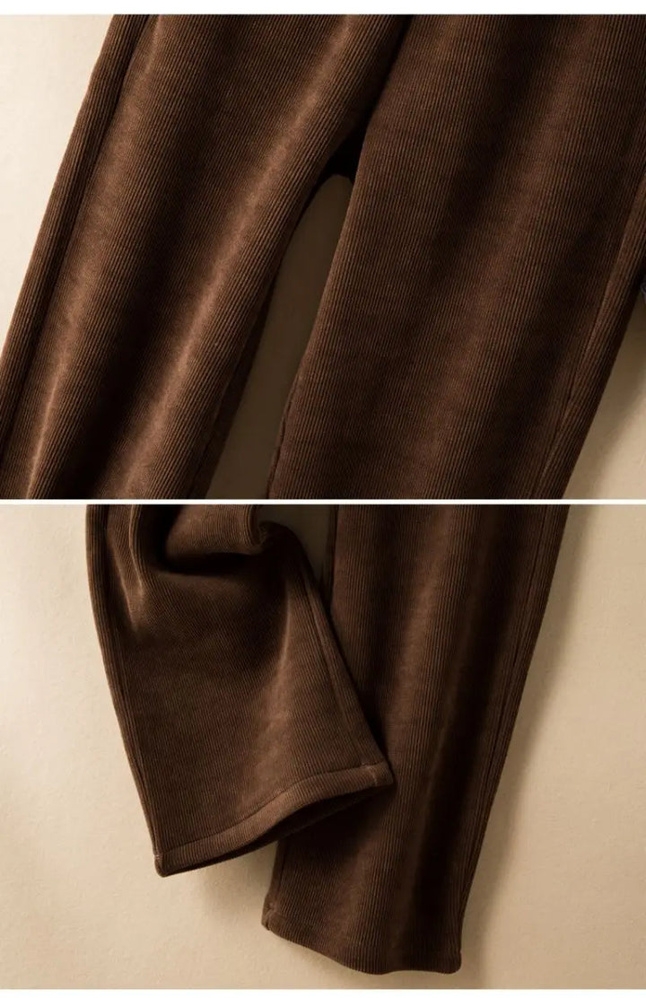 Elastic Waist Corduroy Fleece Wide leg Pants