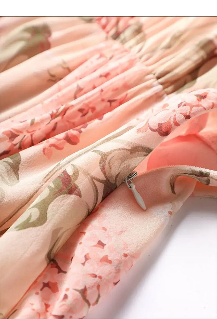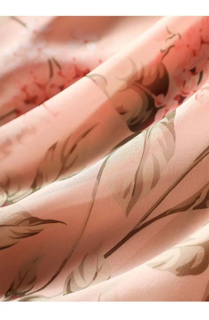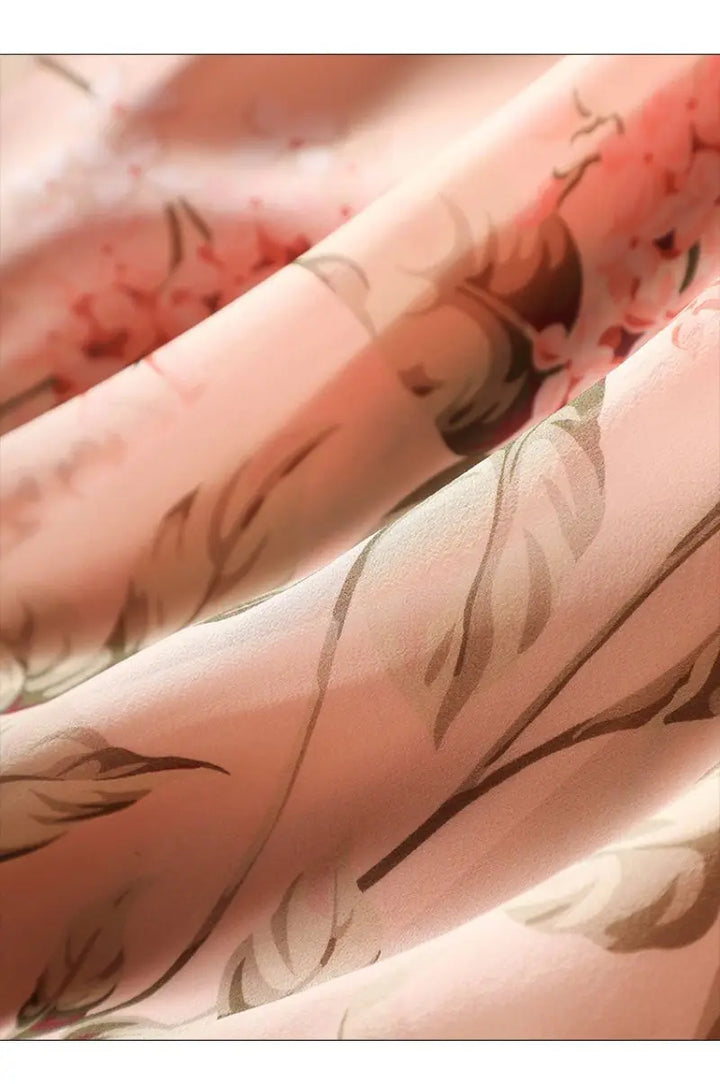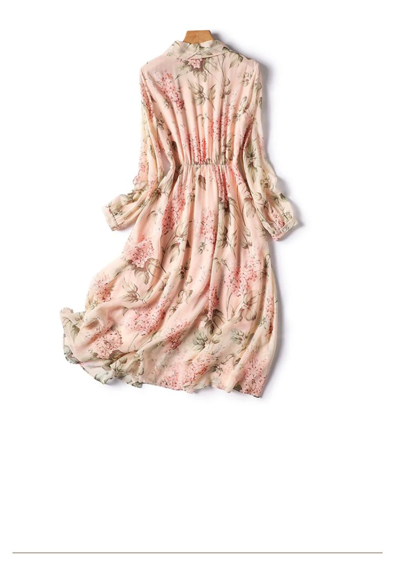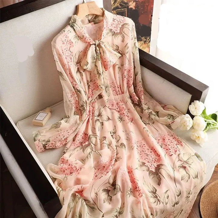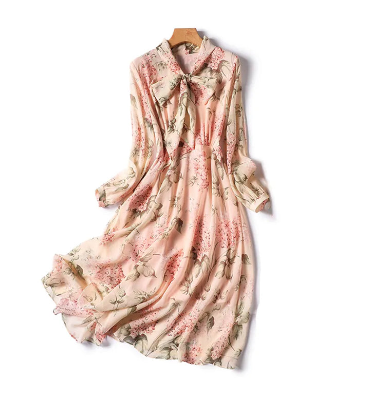 Floral Print Chiffon Bow Neck Long Sleeve Dress
