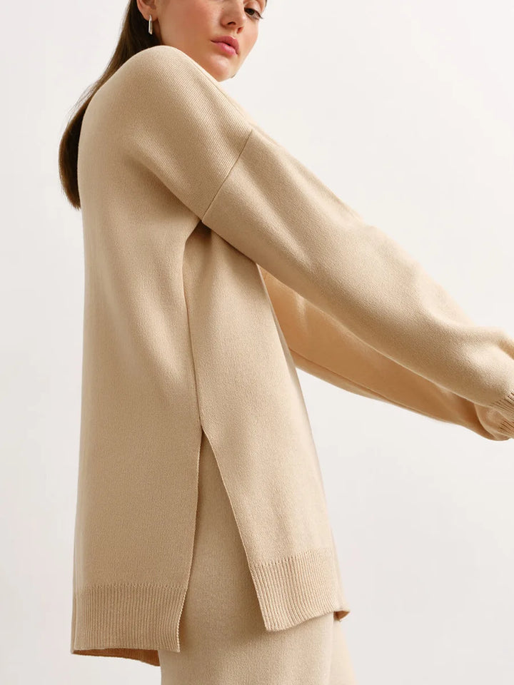 Half Turtleneck Sweater & Wide Leg Pants Knitted Set
