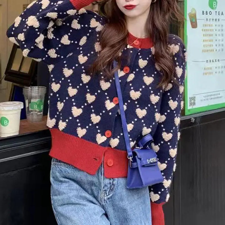 Ugly Sweater Heart Detail Knitted Short Cardigan