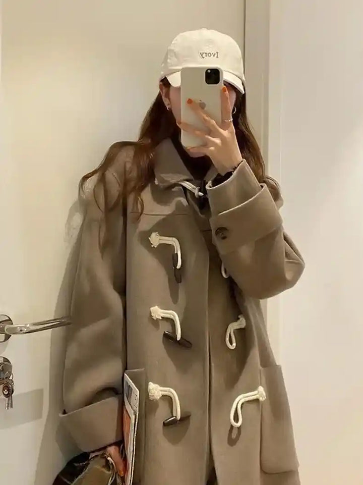 Horn Button Mid Length Wool Coat