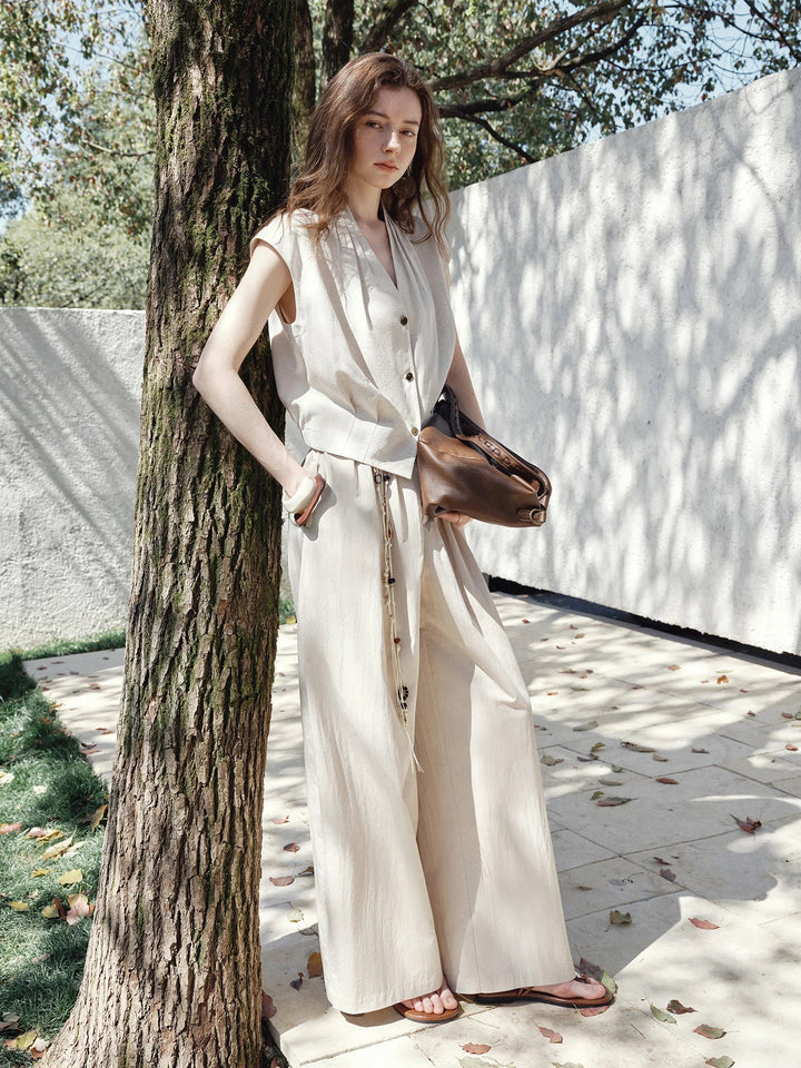 Material: 49.8% viscose, 36.8% polyester, 13.4% linen blend.