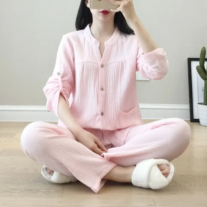 Long Sleeve Shirt & Trouser Cotton Pajamas Suit