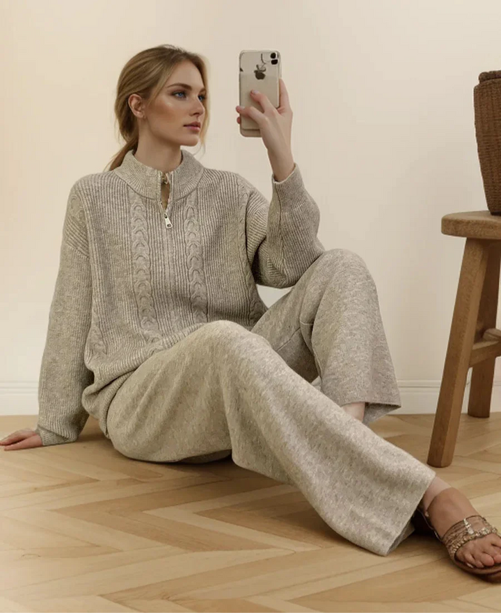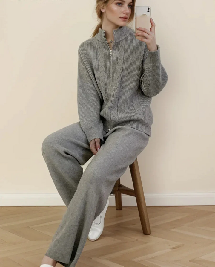 O Neck Sweater & Wide Leg Pants TrackSuit