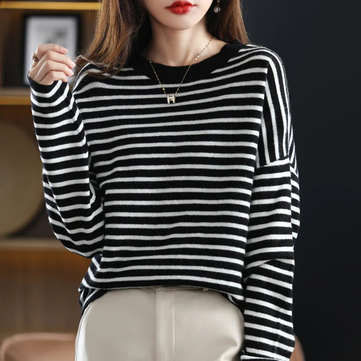 Oversized Round-Neck Striped Wool Sweater Pullover
