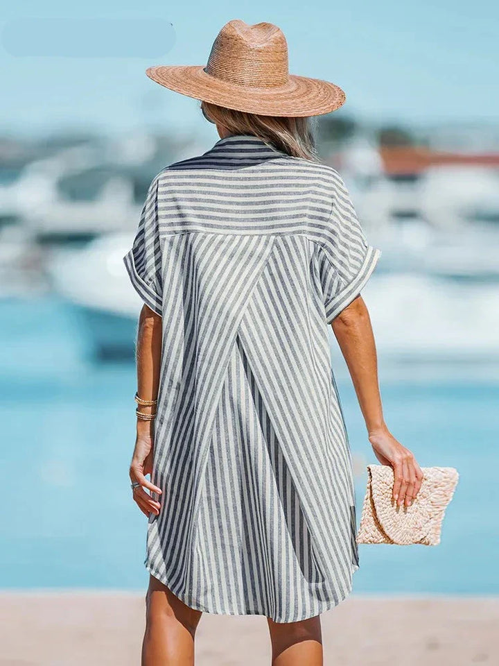 Oversized Striped Short Dolman Sleeve Shirt Dress