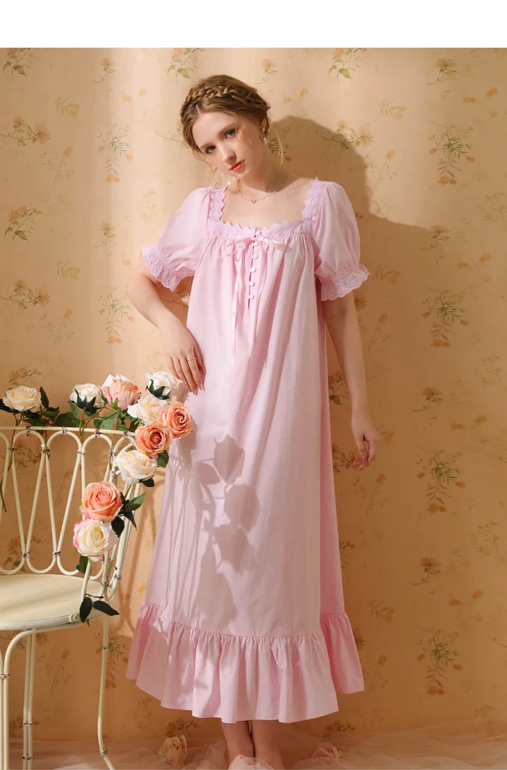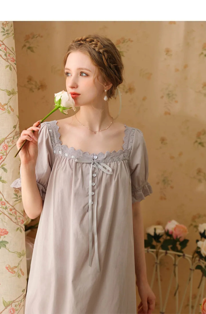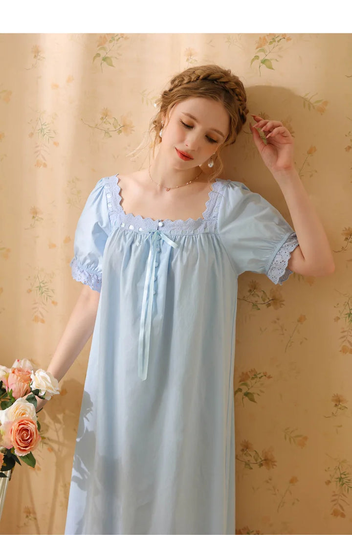 Palace Style Short Sleeve Cotton Pajama Dress