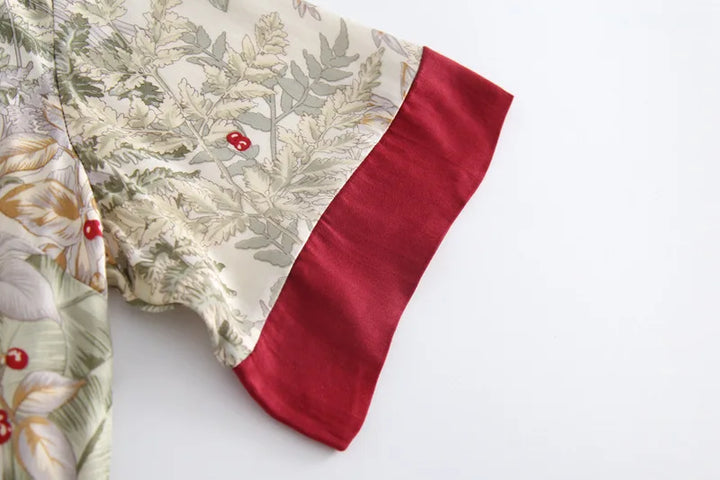 Printed Short Sleeve Shirt & Shorts Satin Pajamas Set