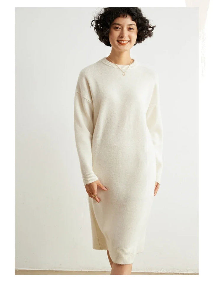 Round-Neck 100% Cashmere Knitted Dress