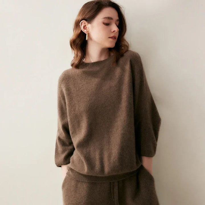 Round-Neck Batwing Sleeve Cashmere Sweater
