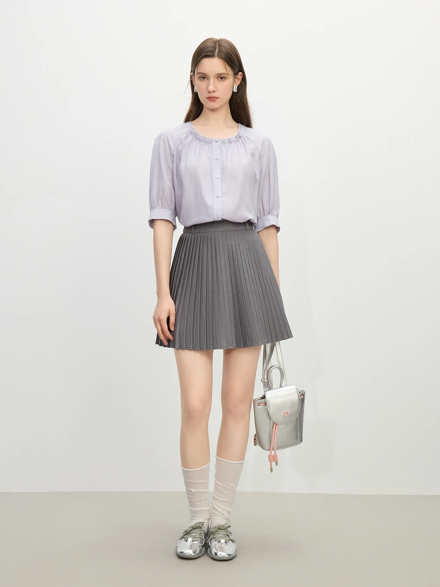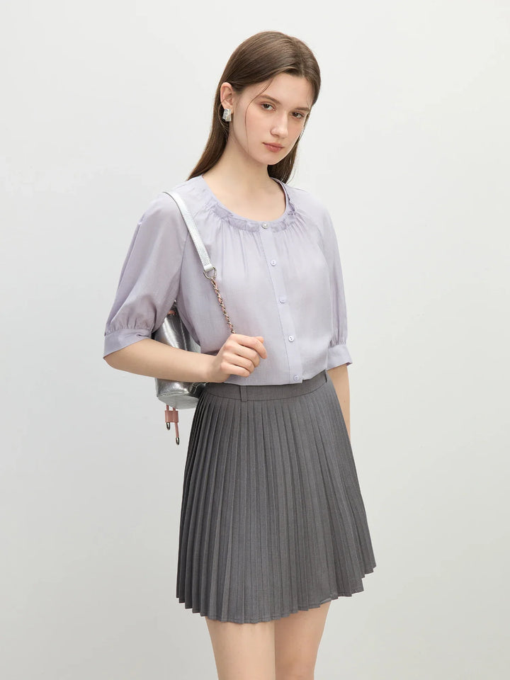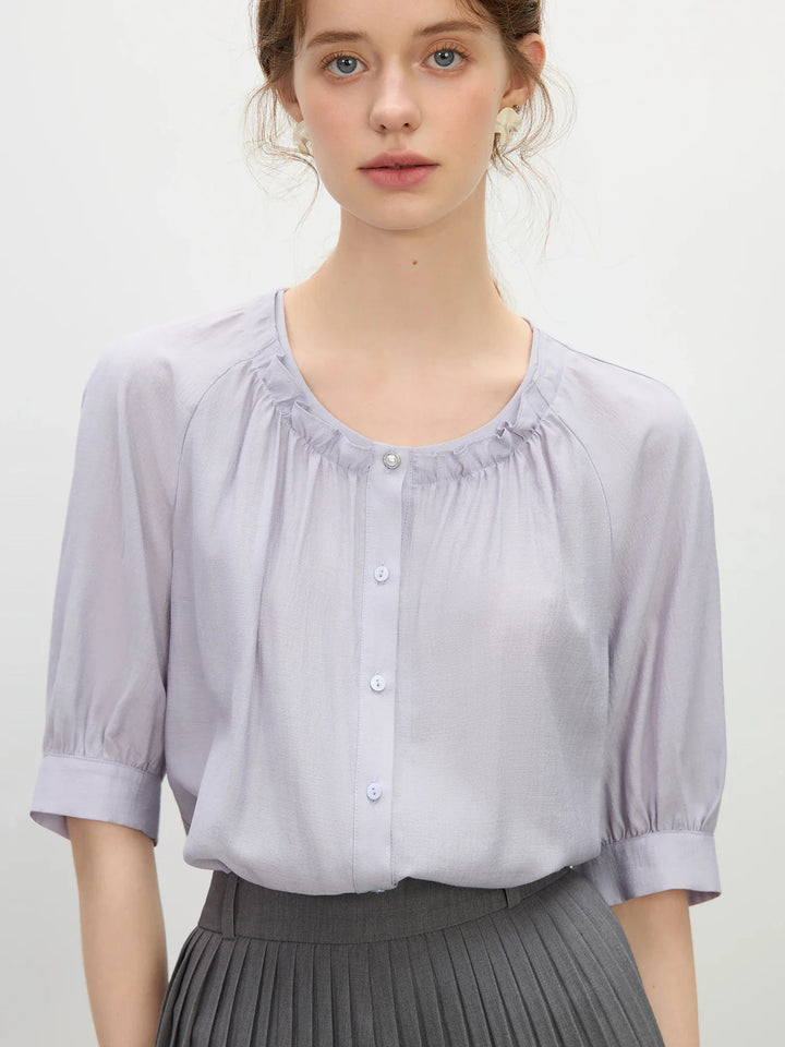 Ruffle Round Neck Linen-Blend Blouse