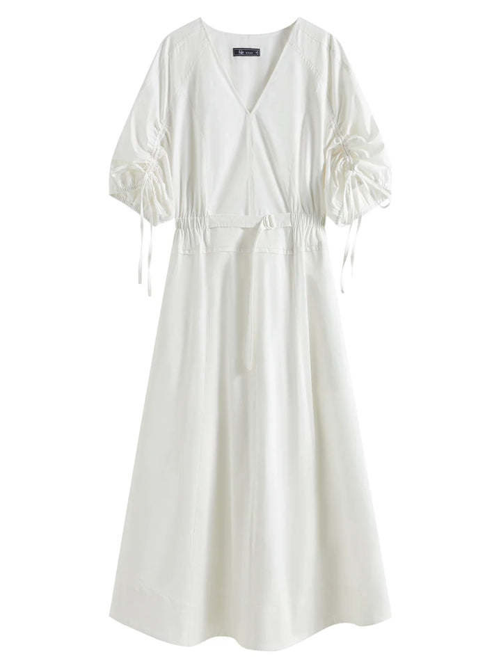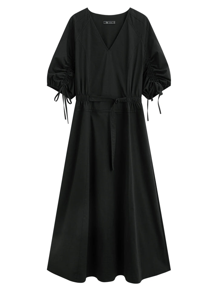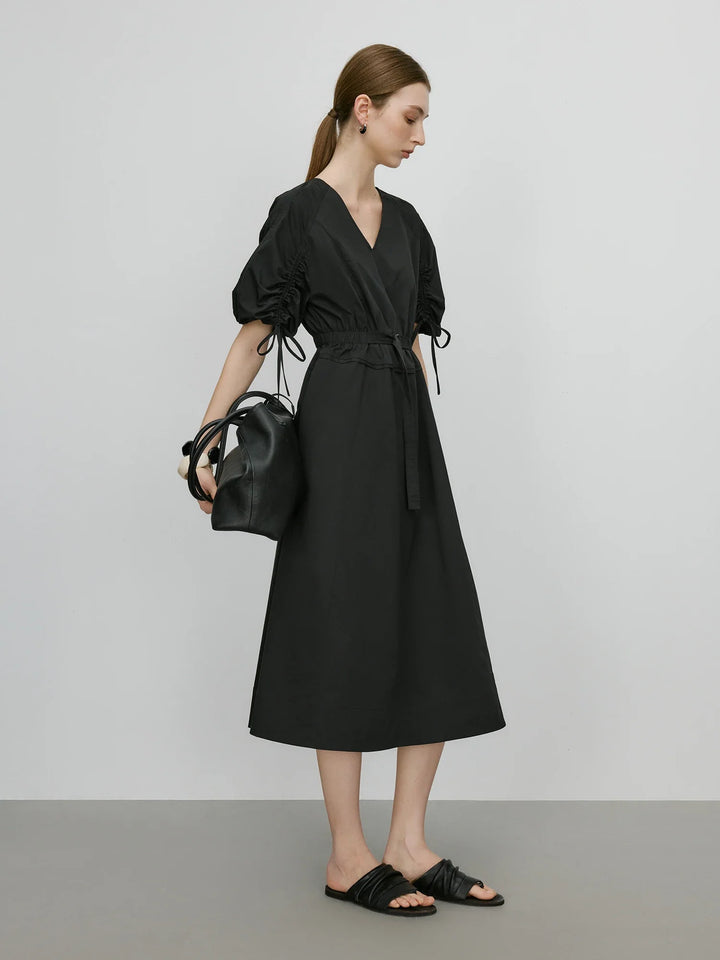 V-Neck Bubble Sleeve Linen Dress