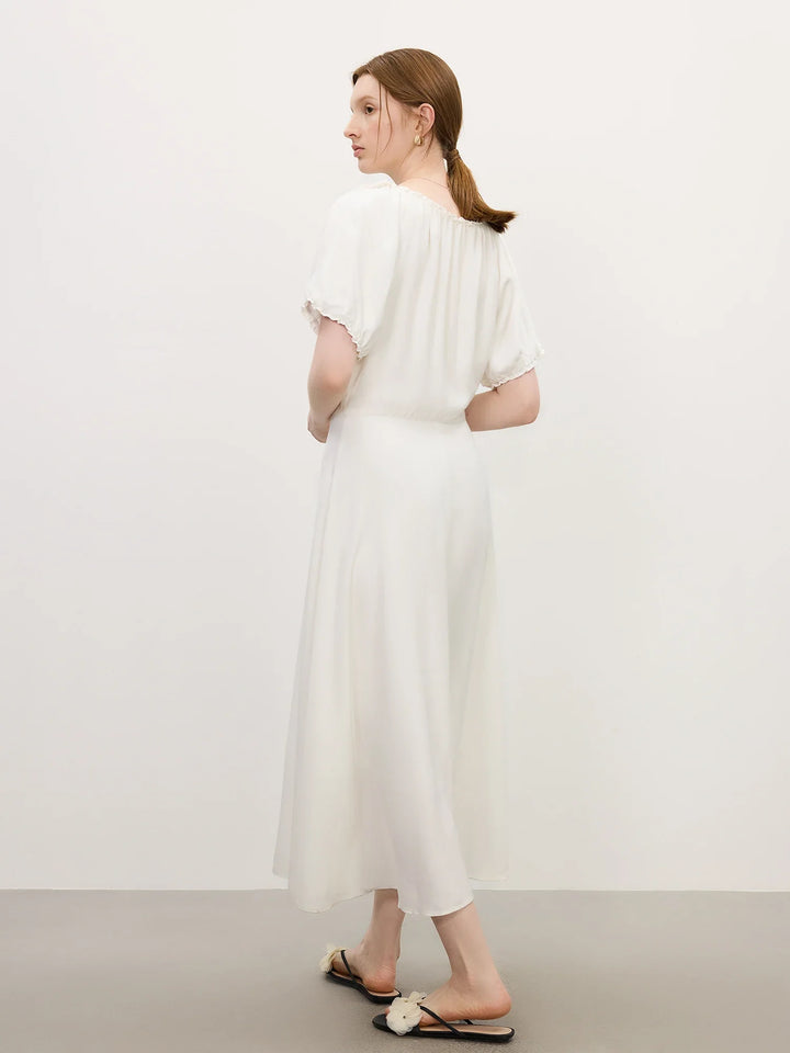 V-Neck Textured Sleeves Dress