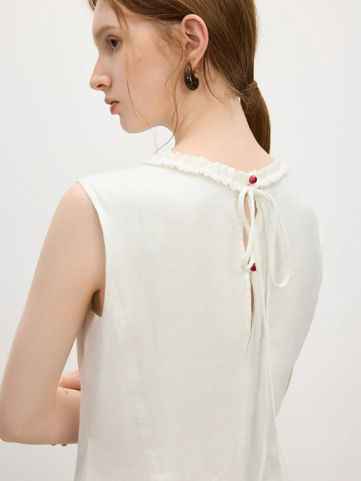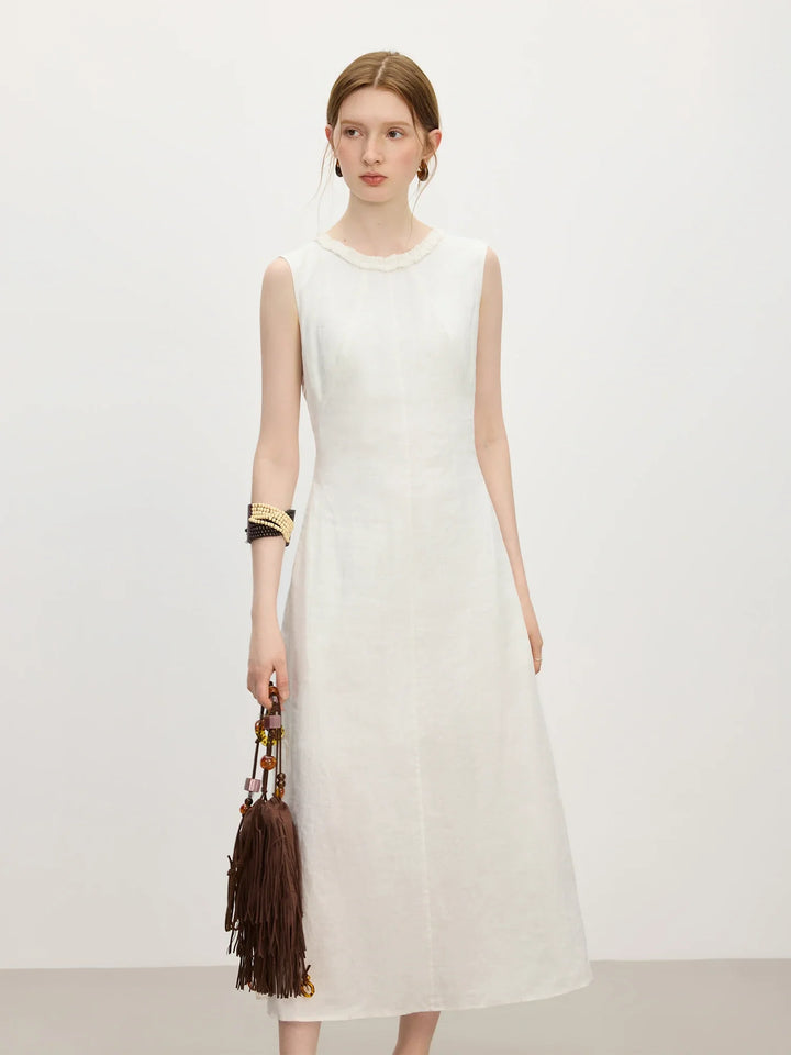 Wood Ear Edge Linen Round Neck Sleeveless Dress