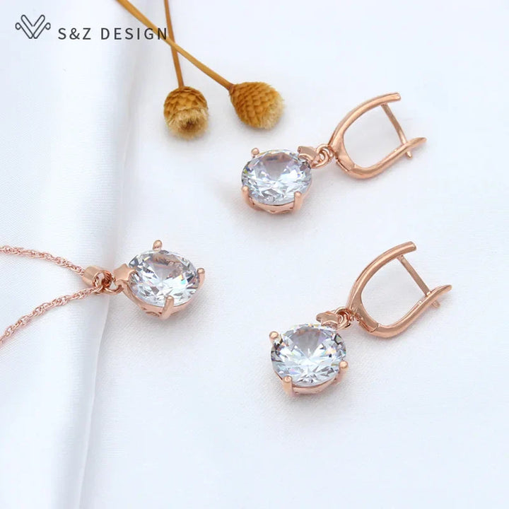 Material:Copper + Cubic Zirconia + 585 Rose Gold/White Gold Plated